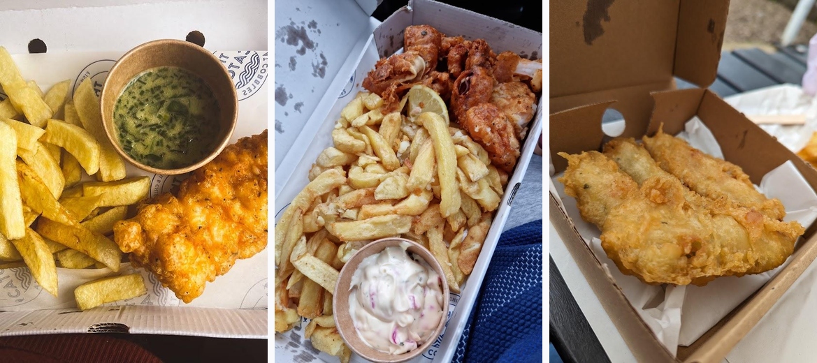 Experience the best fish and chips at The Catch at Cobbles in Bridgend! Enjoy crispy batter, delicious fish goujons, vegan options, and our famous curry sauce. Perfectly located near the beach with a playground for the kids. Visit us today!